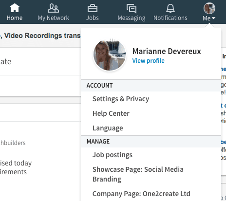 Any company pages you’re an admin of will appear under the ‘Me’ section in the top right.