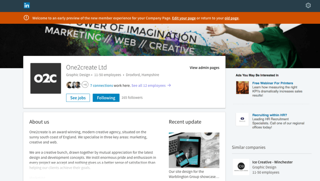However, not all of your image will be shown on the new pages so be sure to check if any text is cut off before publishing it. Banners are much more prominent on the new LinkedIn and will follow you around so making sure your design works is important.