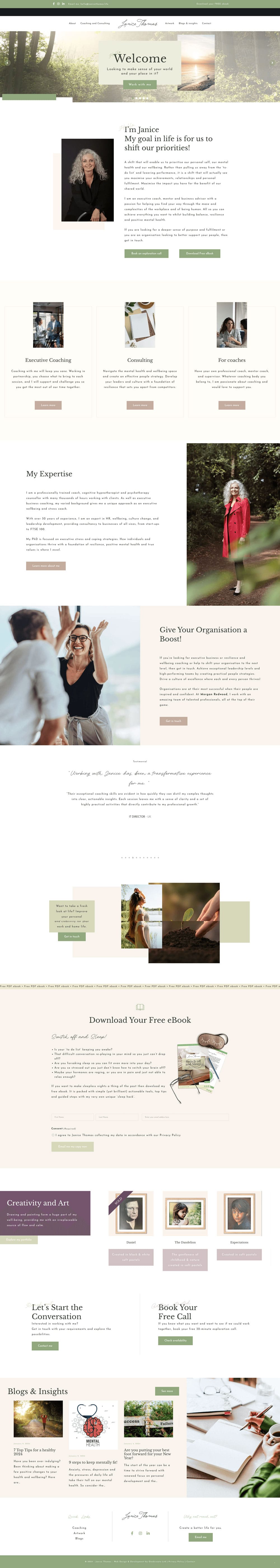 Janice provides executive coaching, consulting, and mentoring services focusing on enhancing personal development and leadership while taking care of your mental health. After a creative kick-off, we designed and built a site with a calm, soothing feel to reflect Janice’s passion for helping people build resilience and improve their well-being. Every aspect of the project was tailored to reflect Janice’s amazing individuality and unique personality, with optimised landing pages and a user-friendly layout. This included a custom email functionality to make communications easier than ever.