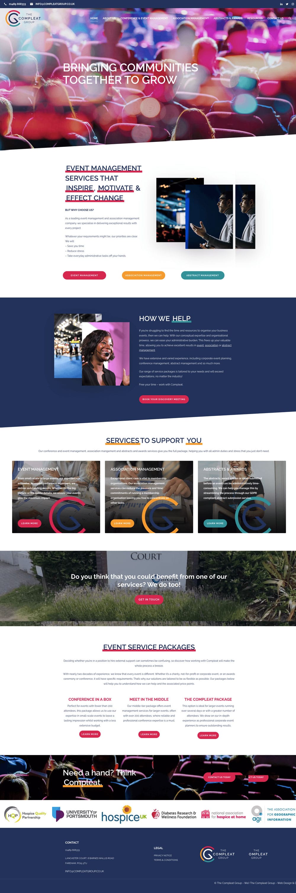 Following on from their new branding, we refreshed the Compleat Group’s website to match. The new site is fresh, modern, and easy to navigate, with engaging and professional imagery. Using colour blocking to highlight the different sectors, the site feels cohesive and exciting while remaining professional and user-friendly.