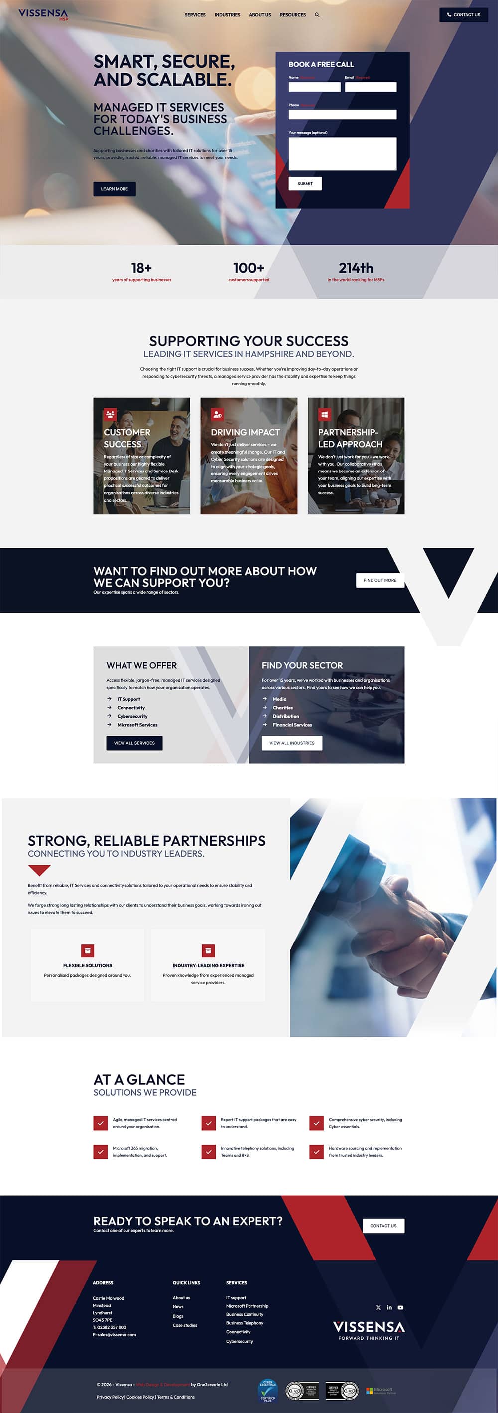 Visually, we delivered a bold, contemporary design using confident layouts, punchy iconography, and Vissensa’s energetic yet professional colour palette. The result is a sharp, high-performing website that reinforces Vissensa’s position as an expert MSP.