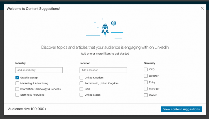 At the same time as all of those benefits, LinkedIn also released a feature that suggests content (named, you guessed it, Content Suggestions), with the aim of showing topics and pieces of content that are trending within the company’s target audience.